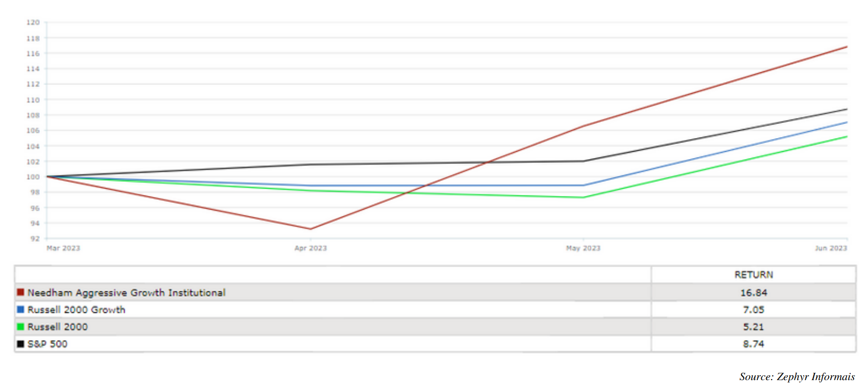 - The Fund’s Institutional (NEAIX) and Retail (NEAGX) classes returned 16.84% and 16.75%, respectively, in 2Q23, outperforming the Russell 2000 Growth’s 7.05% return.