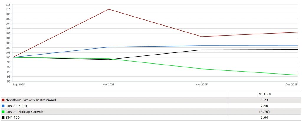 - In 4Q25, the Russell 2000 Growth and Russell 3000 returned 1.22% and 2.40%, respectively.
